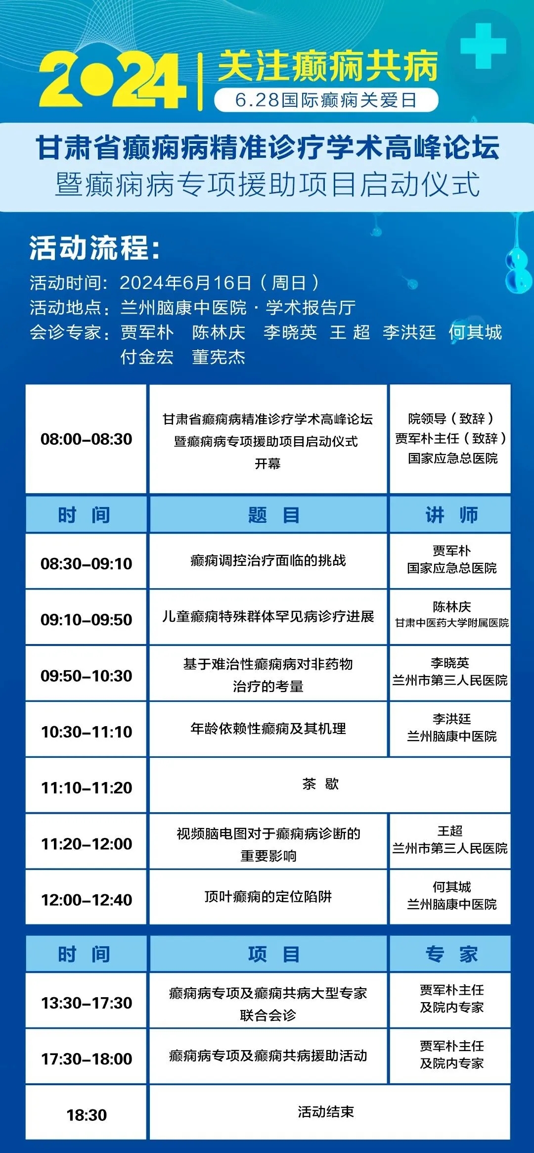 “甘肃省癫痫病精准诊疗学术高峰论坛·暨癫痫病专项援助项目启动仪式”